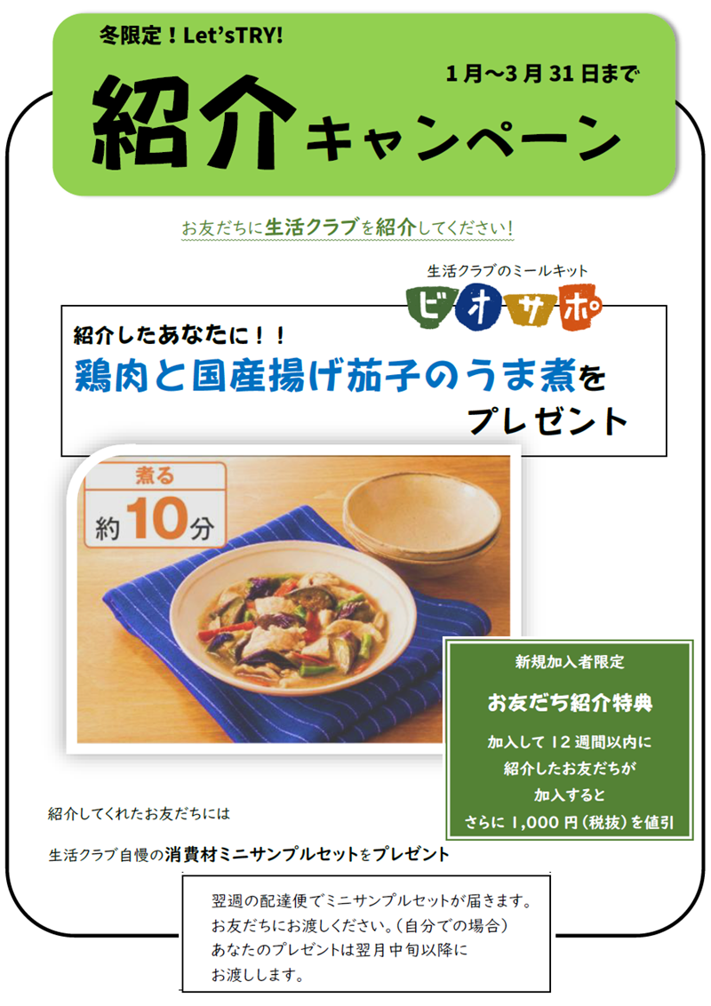 お友だち同士でプレゼントの受渡しをしたい場合は、”生協への連絡事項”欄にその旨をご入力ください(お友だちに"紹介用URL"を送って入力してもらう場合はその旨をお伝えください)。